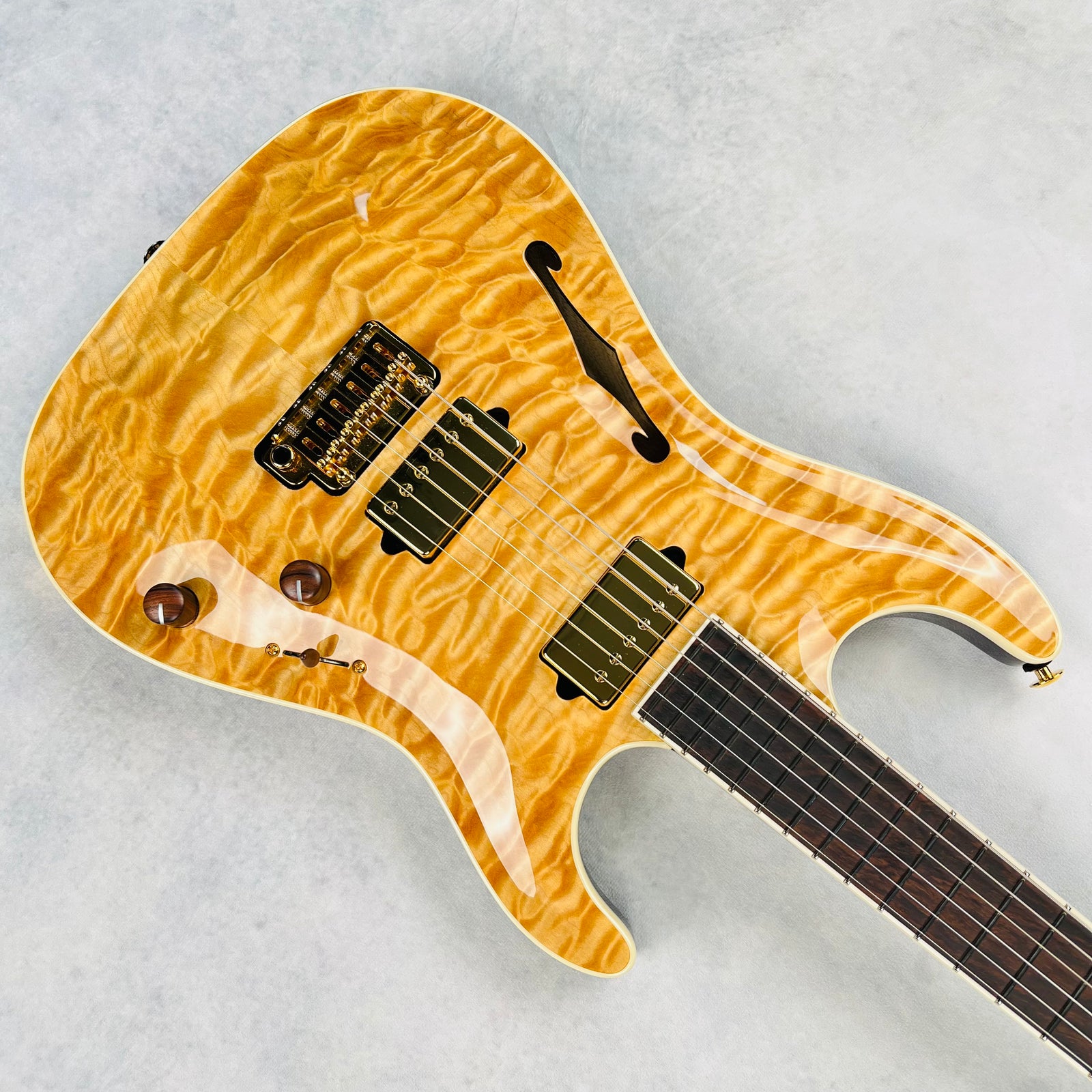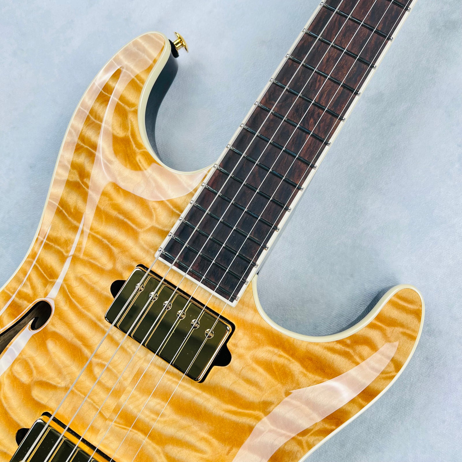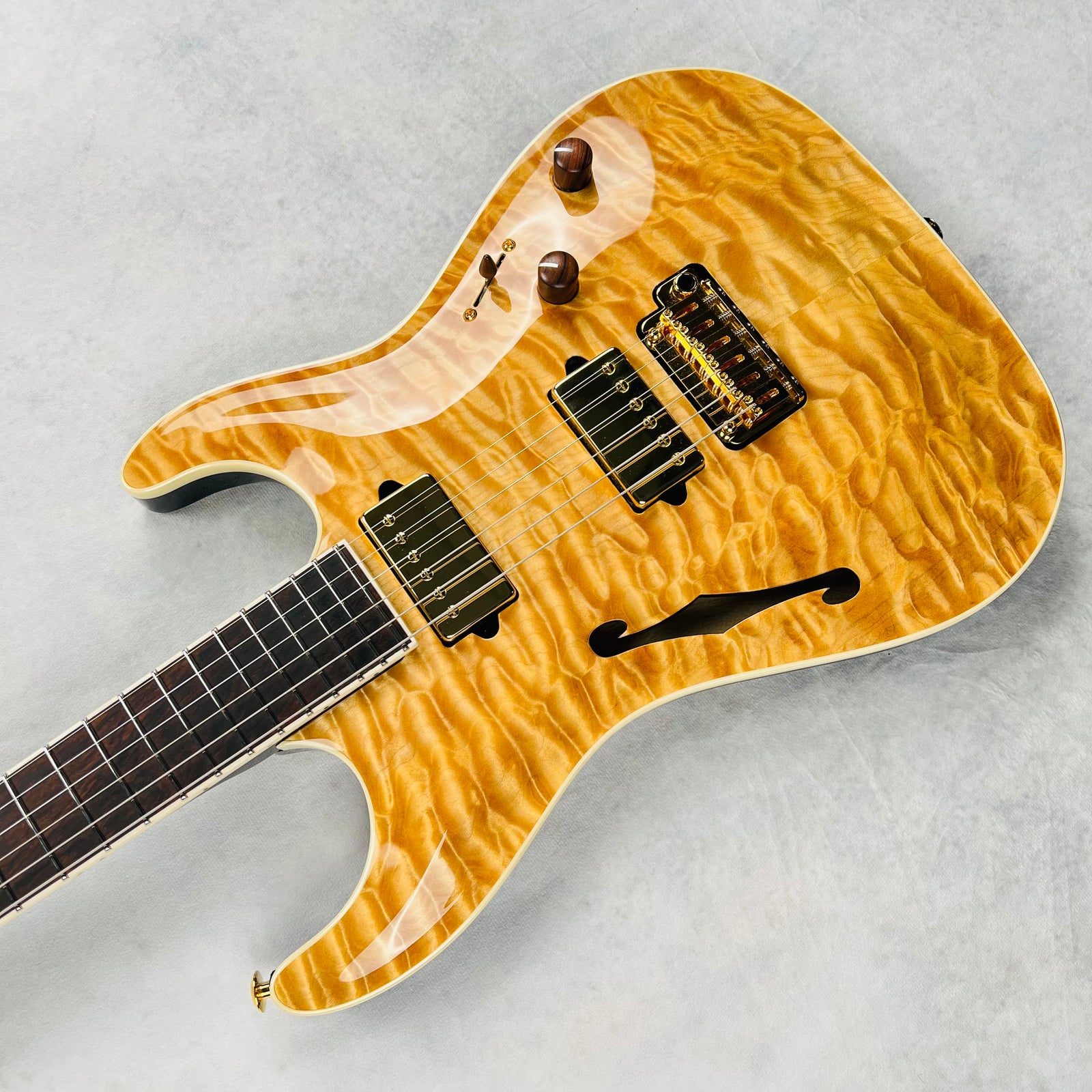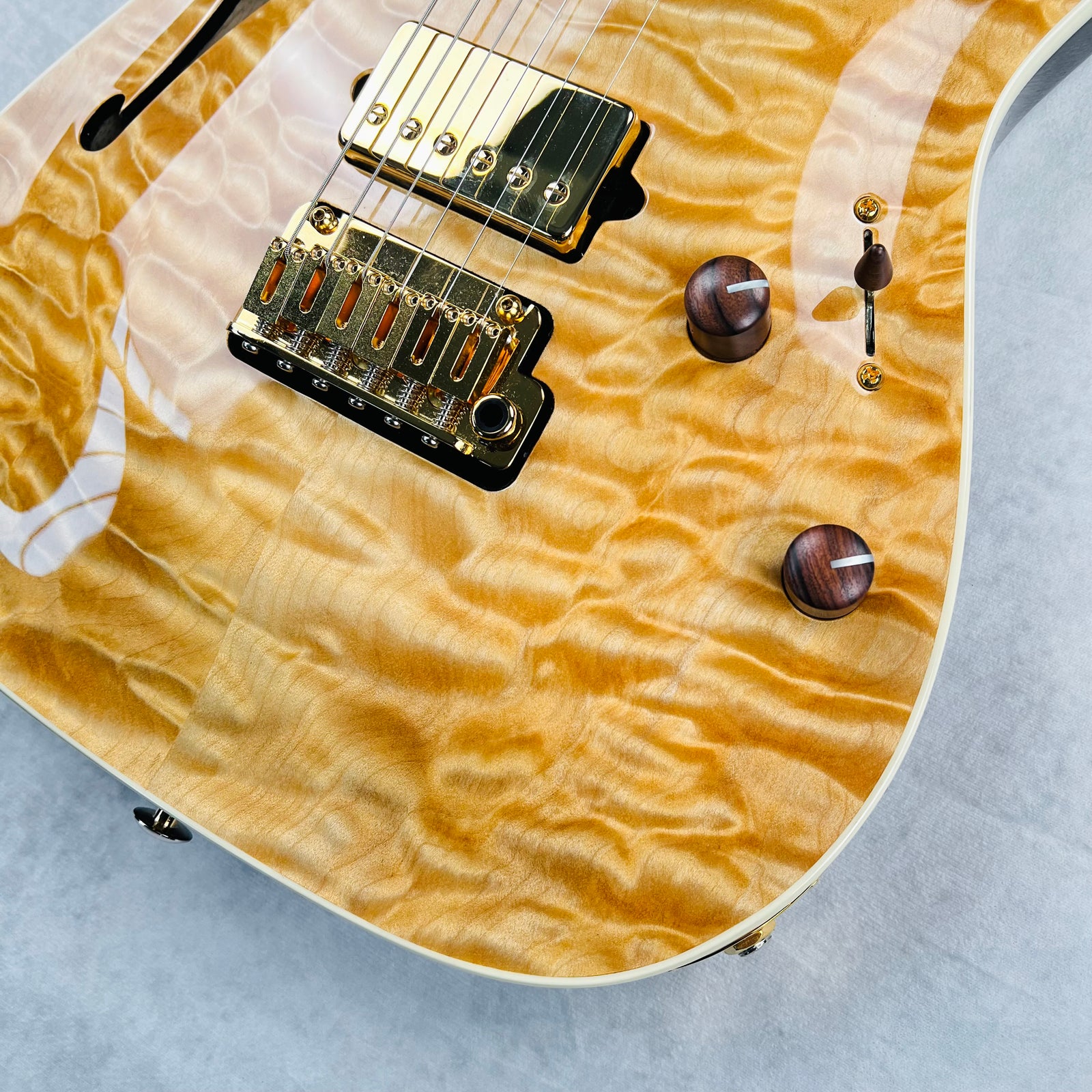 Reference photos for the Standard Arch Top Semi-Hollow Quilt are available below. These images correspond to model specifications listed above. For larger pics, click on an image to open in a new tab.