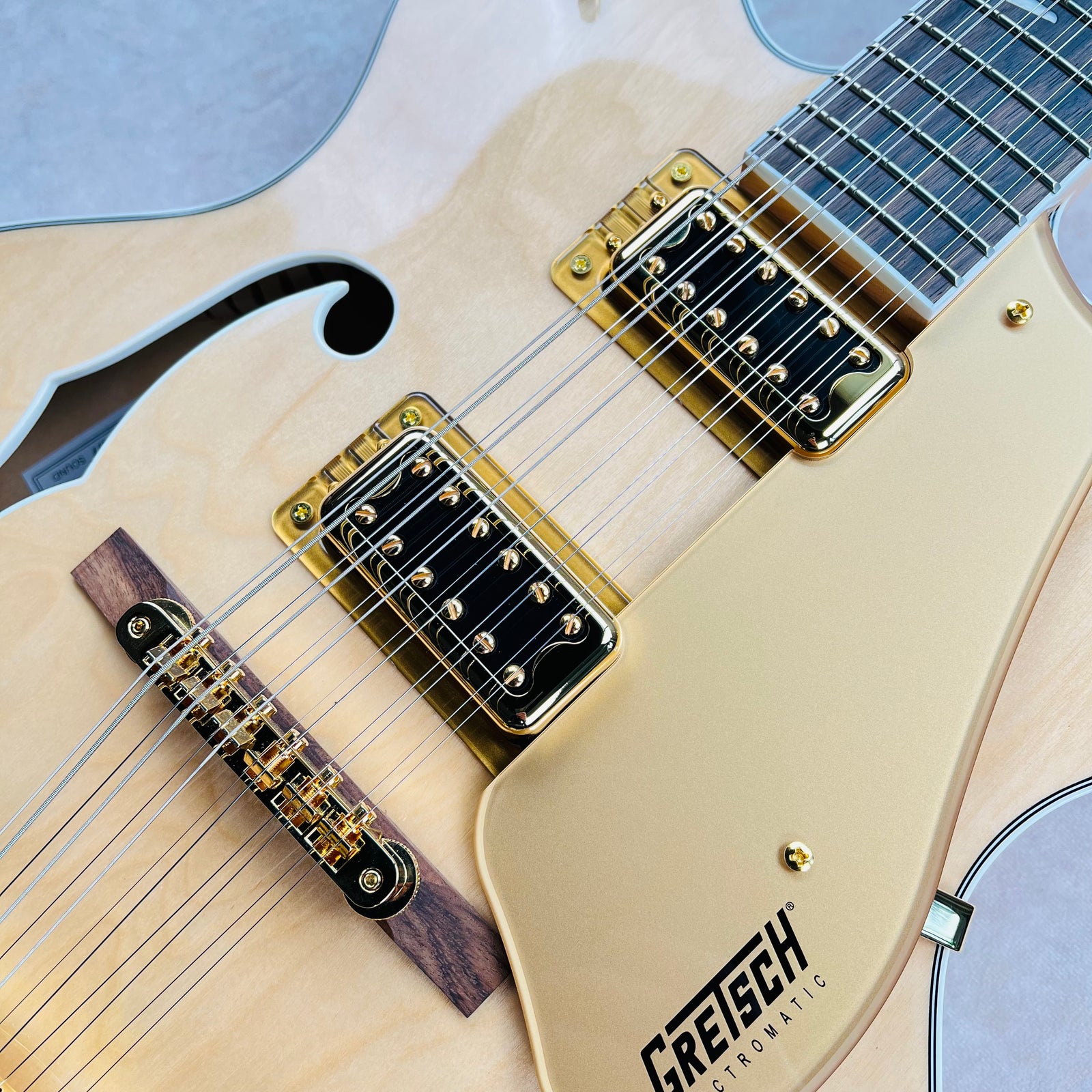 The 2024 G5476G-12 Electromatic Limited Edition 12-String is a semi-hollow electric guitar built by Gretsch. This 12-string guitar was manufactured in China and is a Gretsch Electromatic Series model. Key features include a Laminate Maple Body, Maple Neck, Laurel Fretboard, Gold Hardware, Filter'Tron FT-5E Humbuckers and Natural finish. The specs listed below pertain to the 2024 product year model pictured on this page.